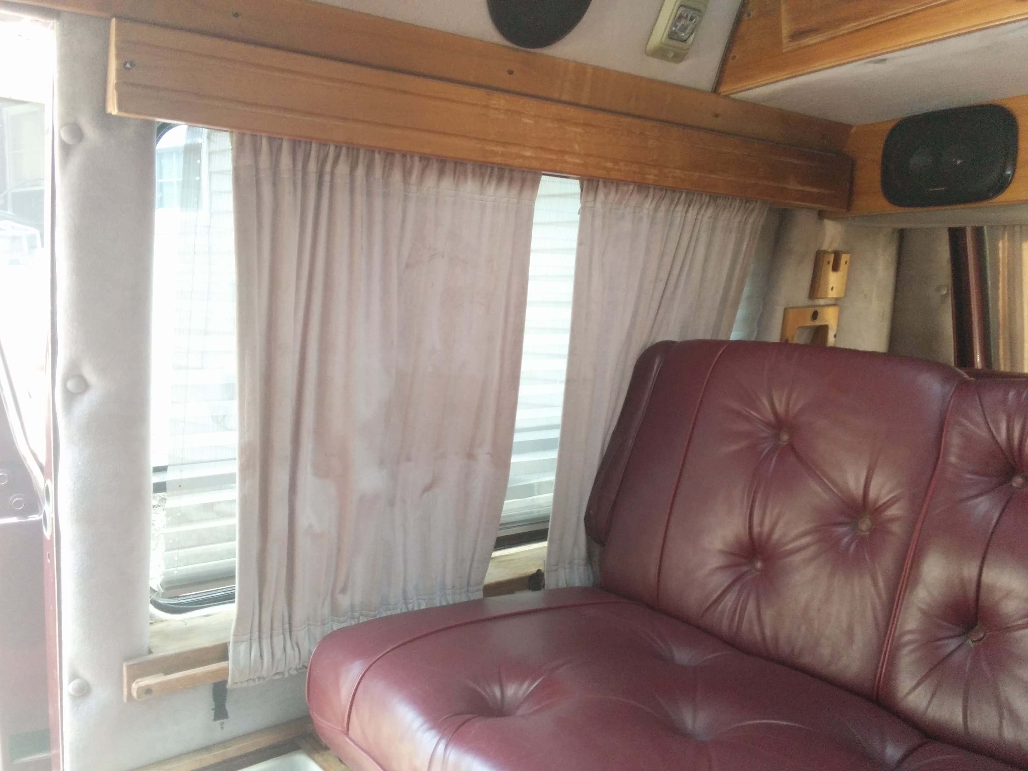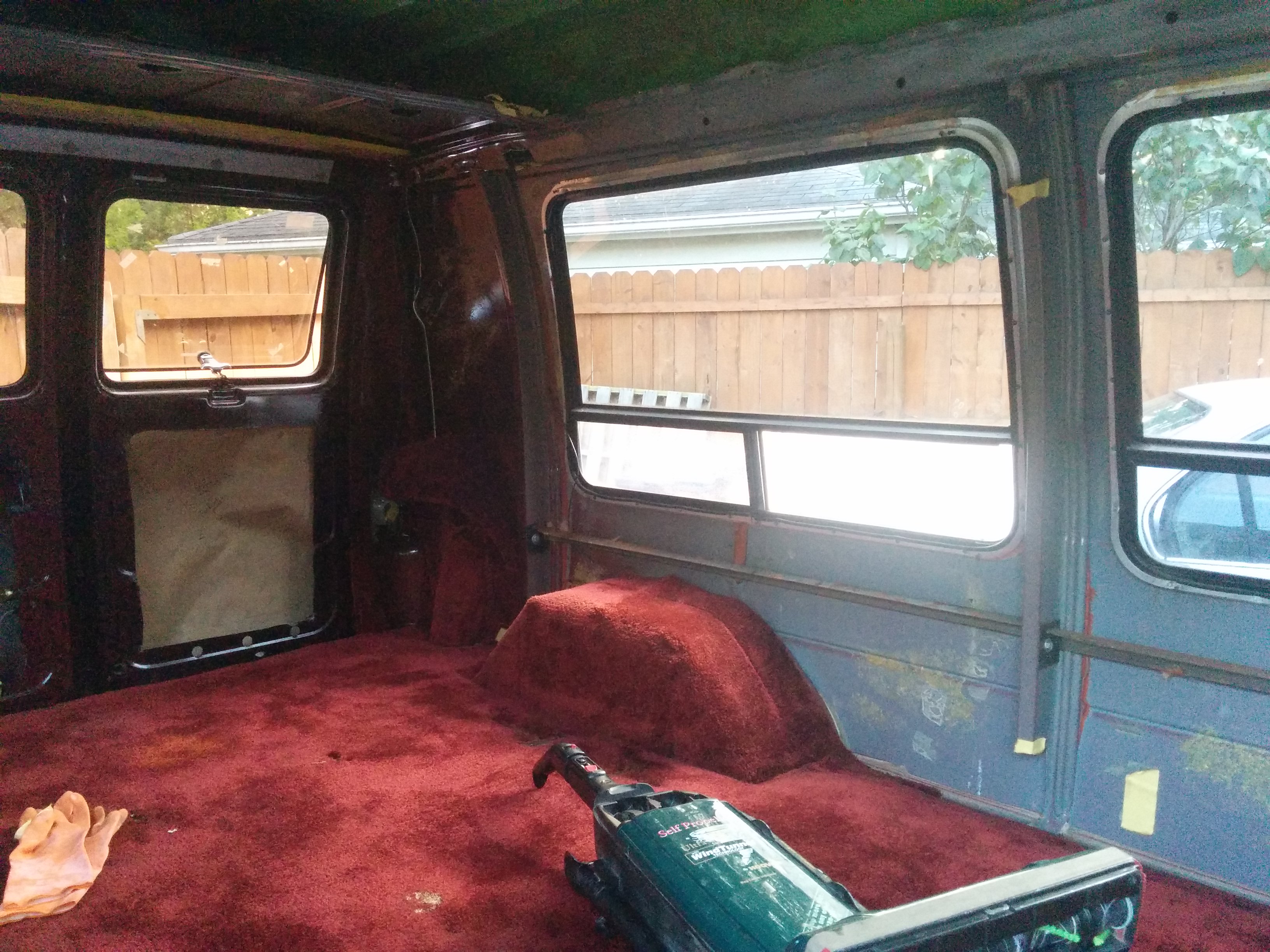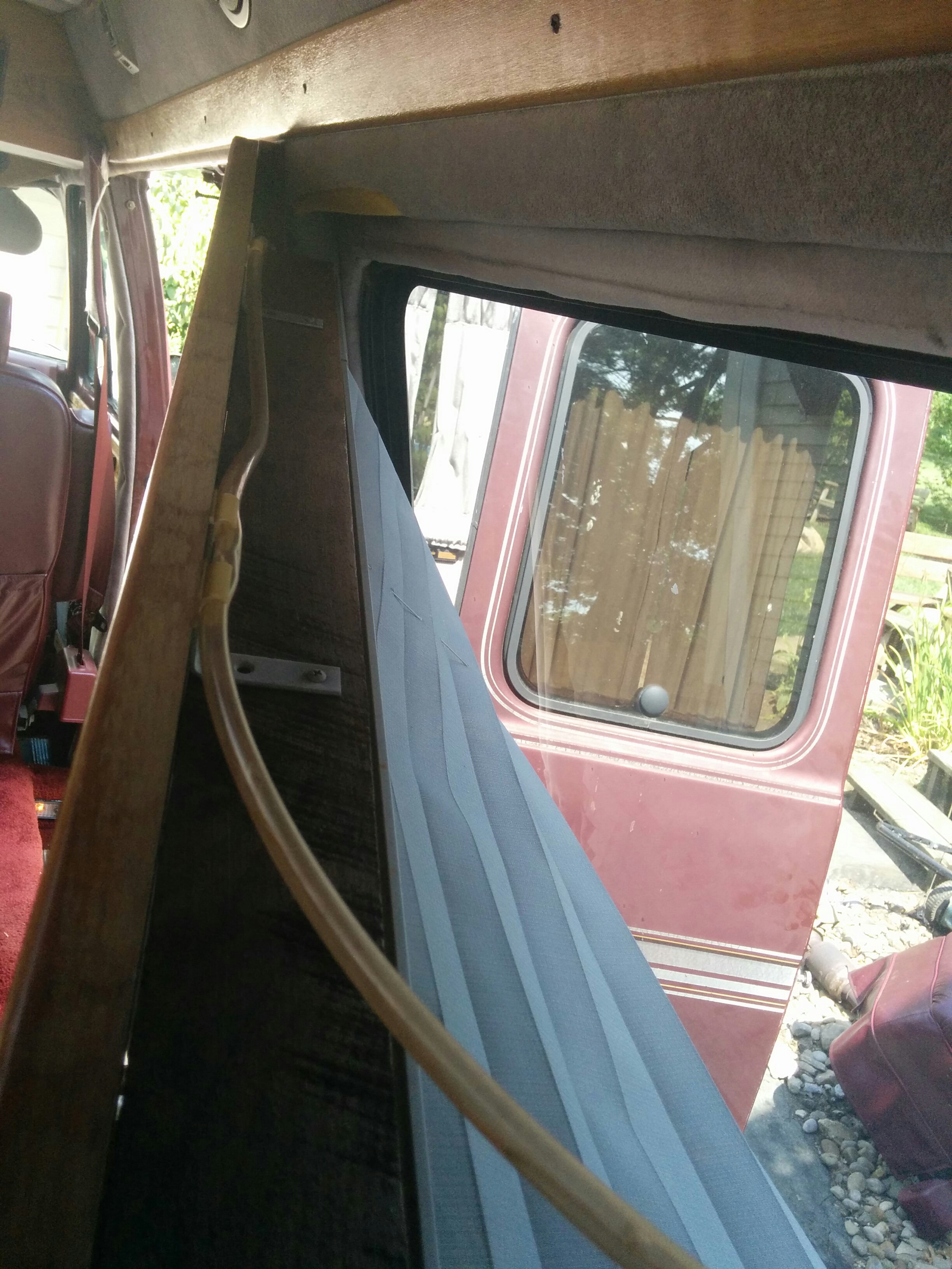 The side windows had these vertical blind contraptions along with a heavy fabric curtain. Neither would be useful for my purposes. I would remove the curtains and blackout the interior of the glass with plastidip before walling them off to improve both the privacy and the security.