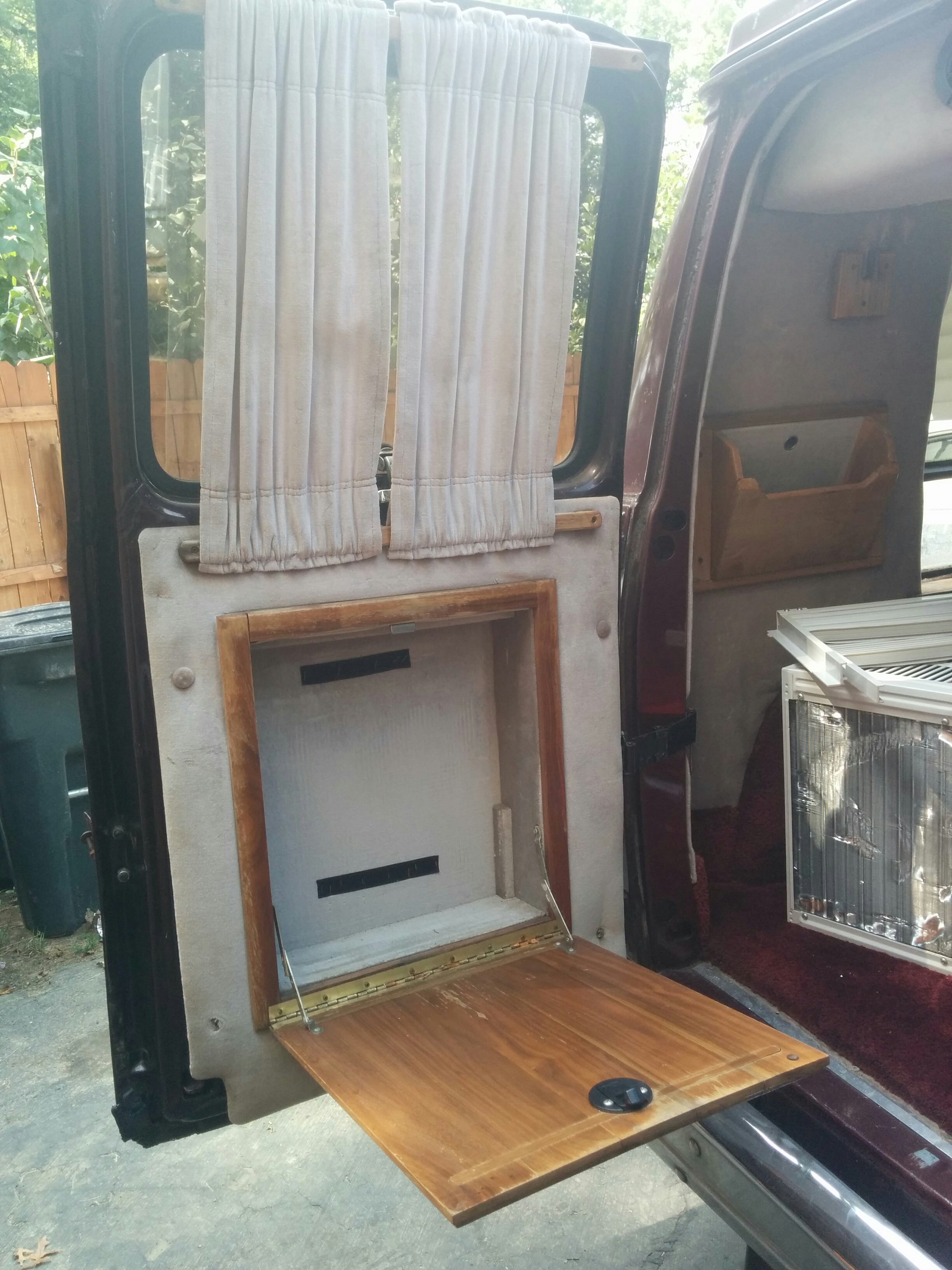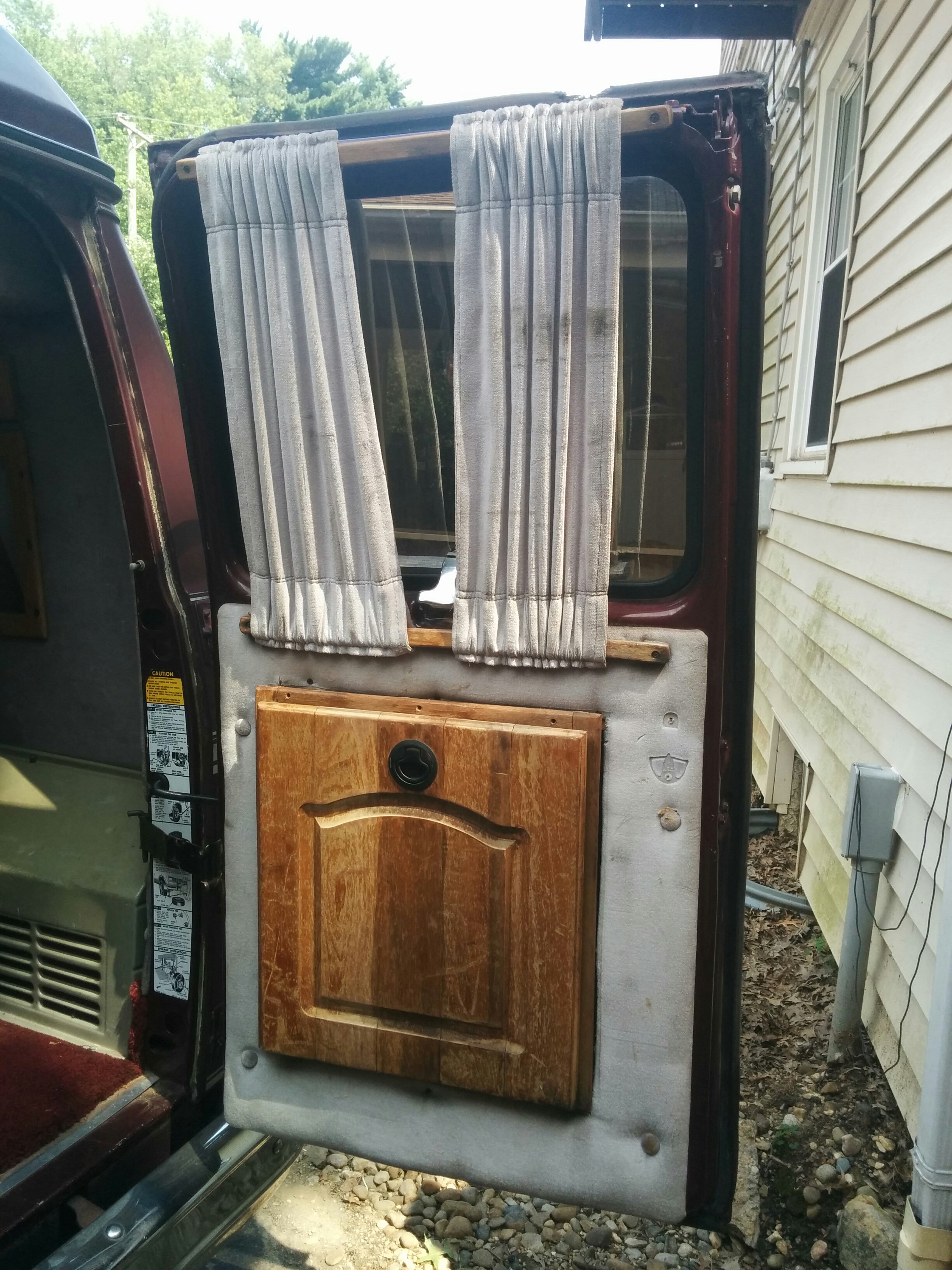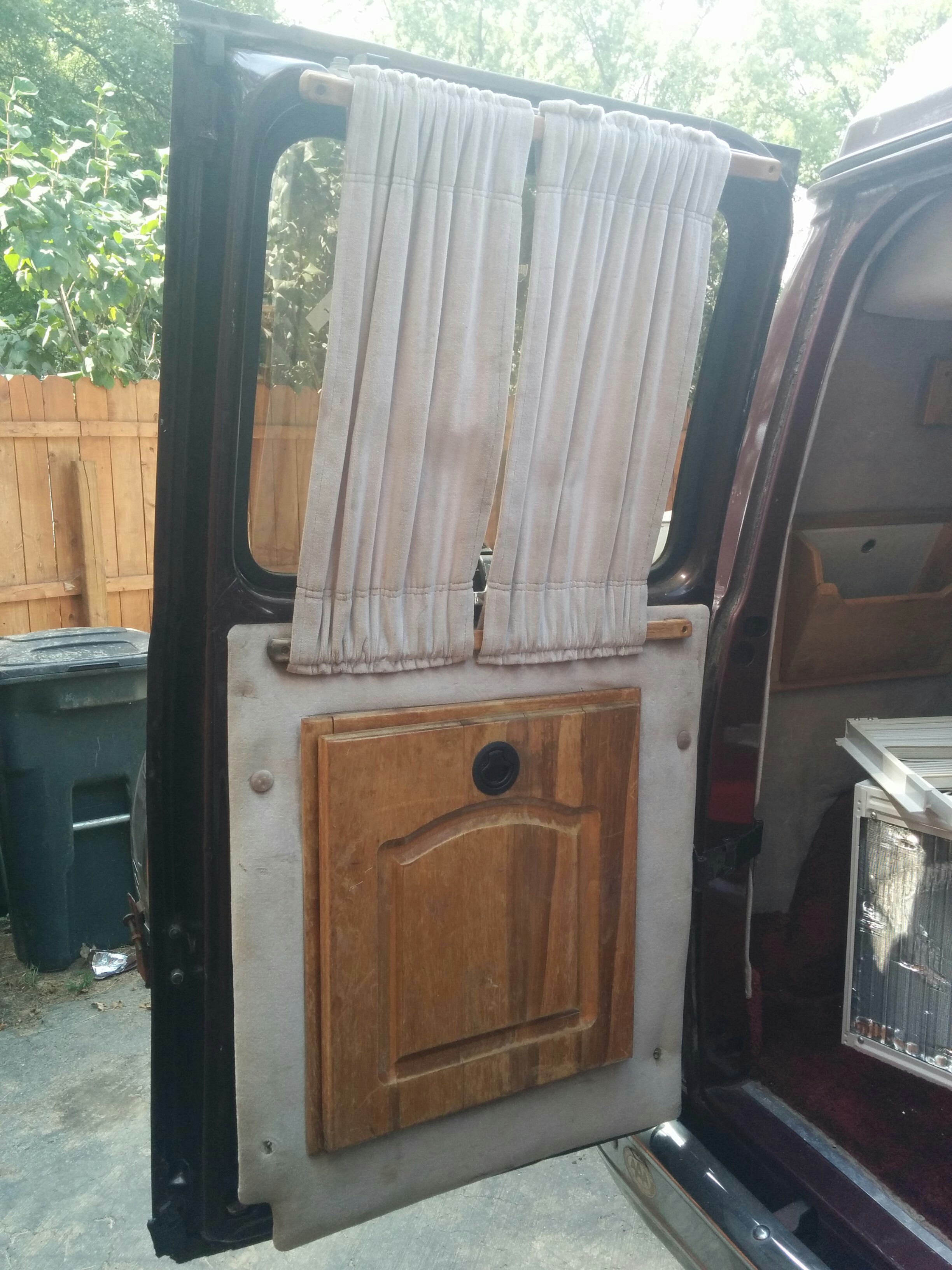 The side windows had these vertical blind contraptions along with a heavy fabric curtain. Neither would be useful for my purposes. I would remove the curtains and blackout the interior of the glass with plastidip before walling them off to improve both the privacy and the security.