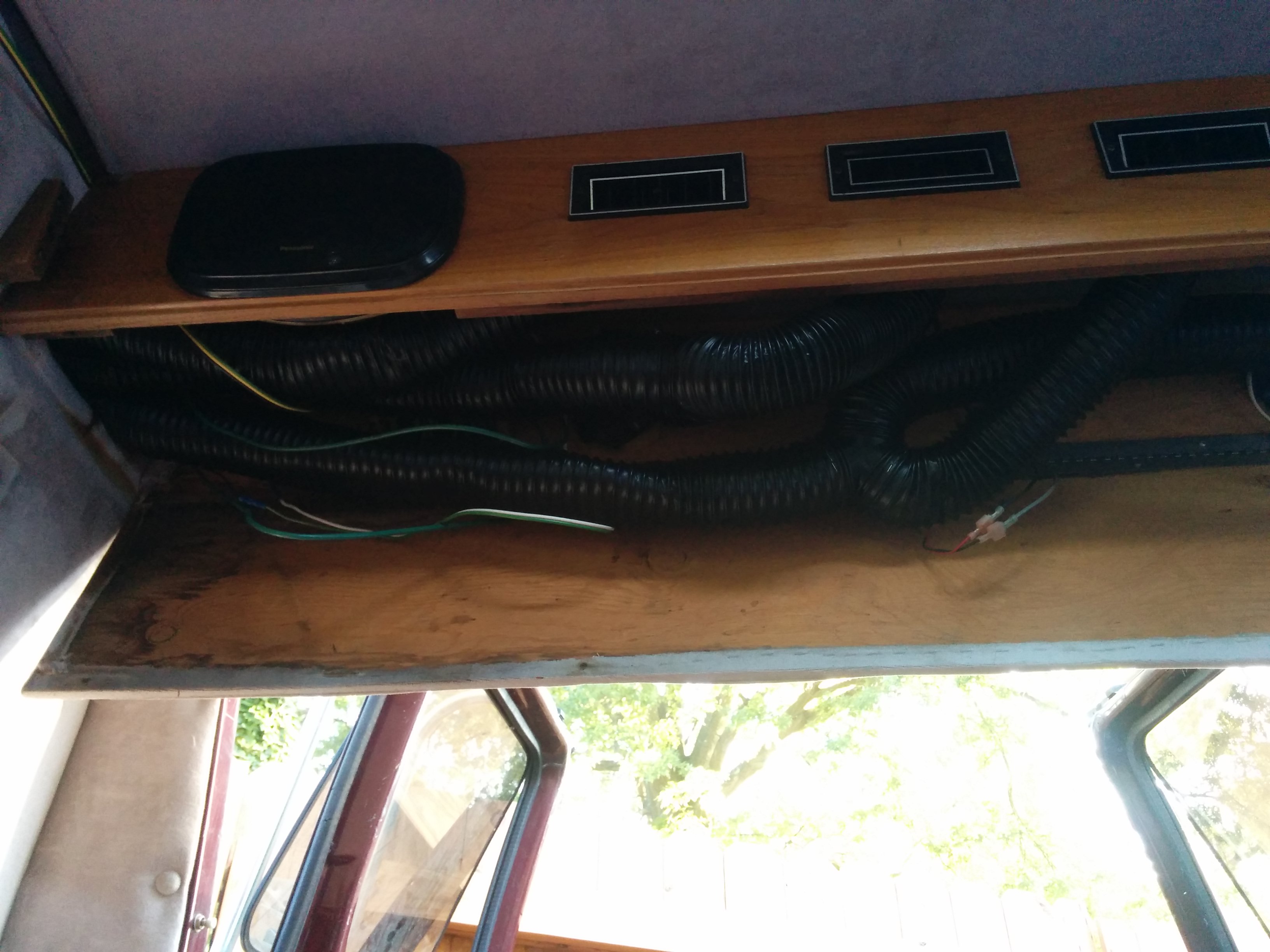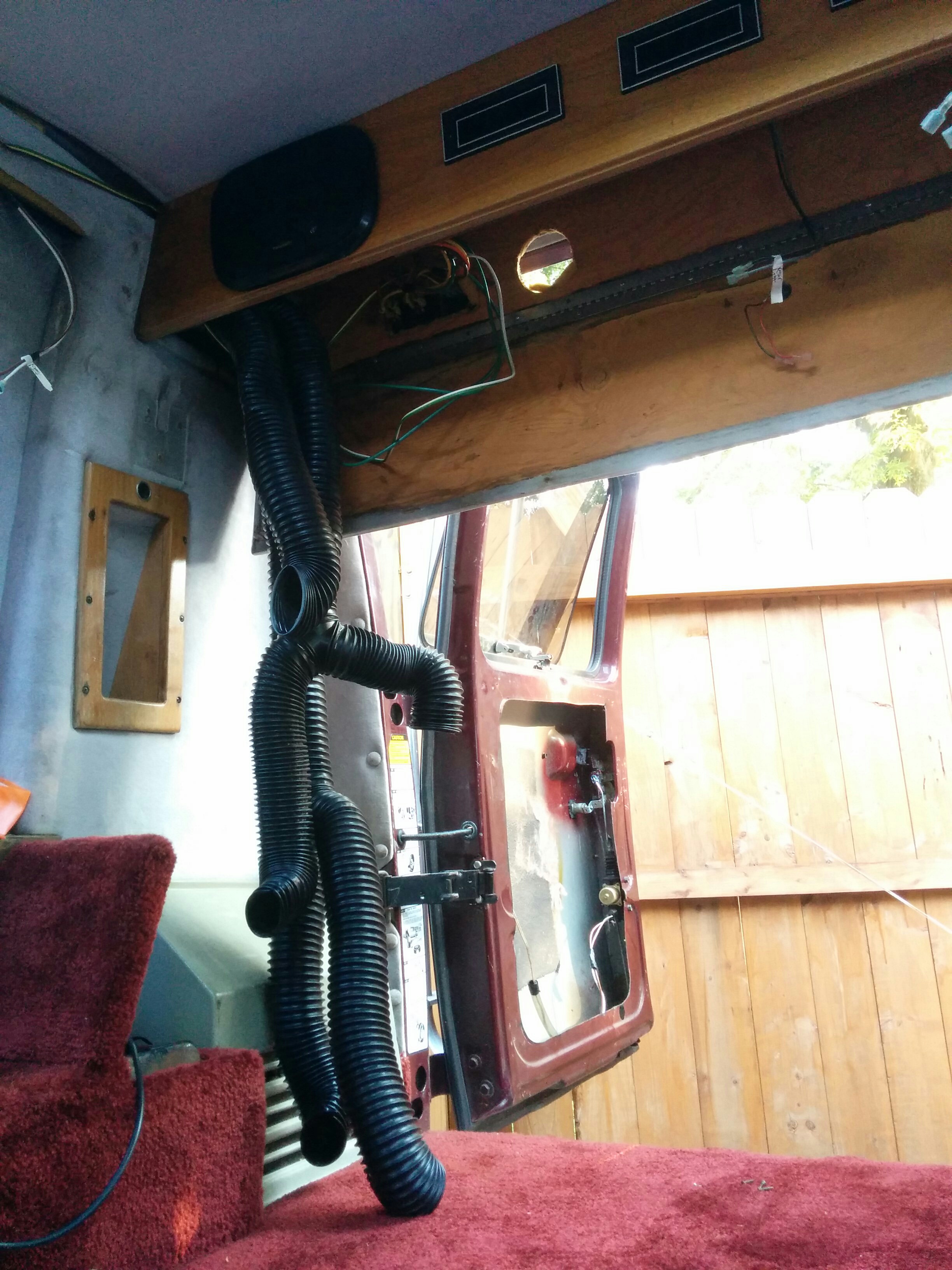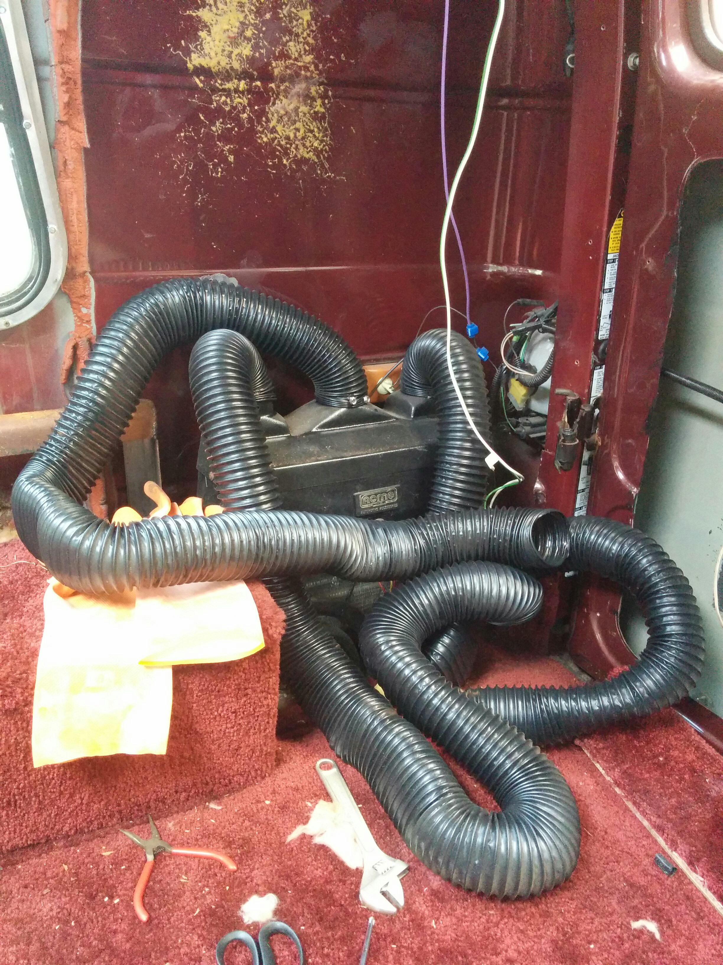 When I detached the back shelf, I uncovered an enormous quantity of duct hose.