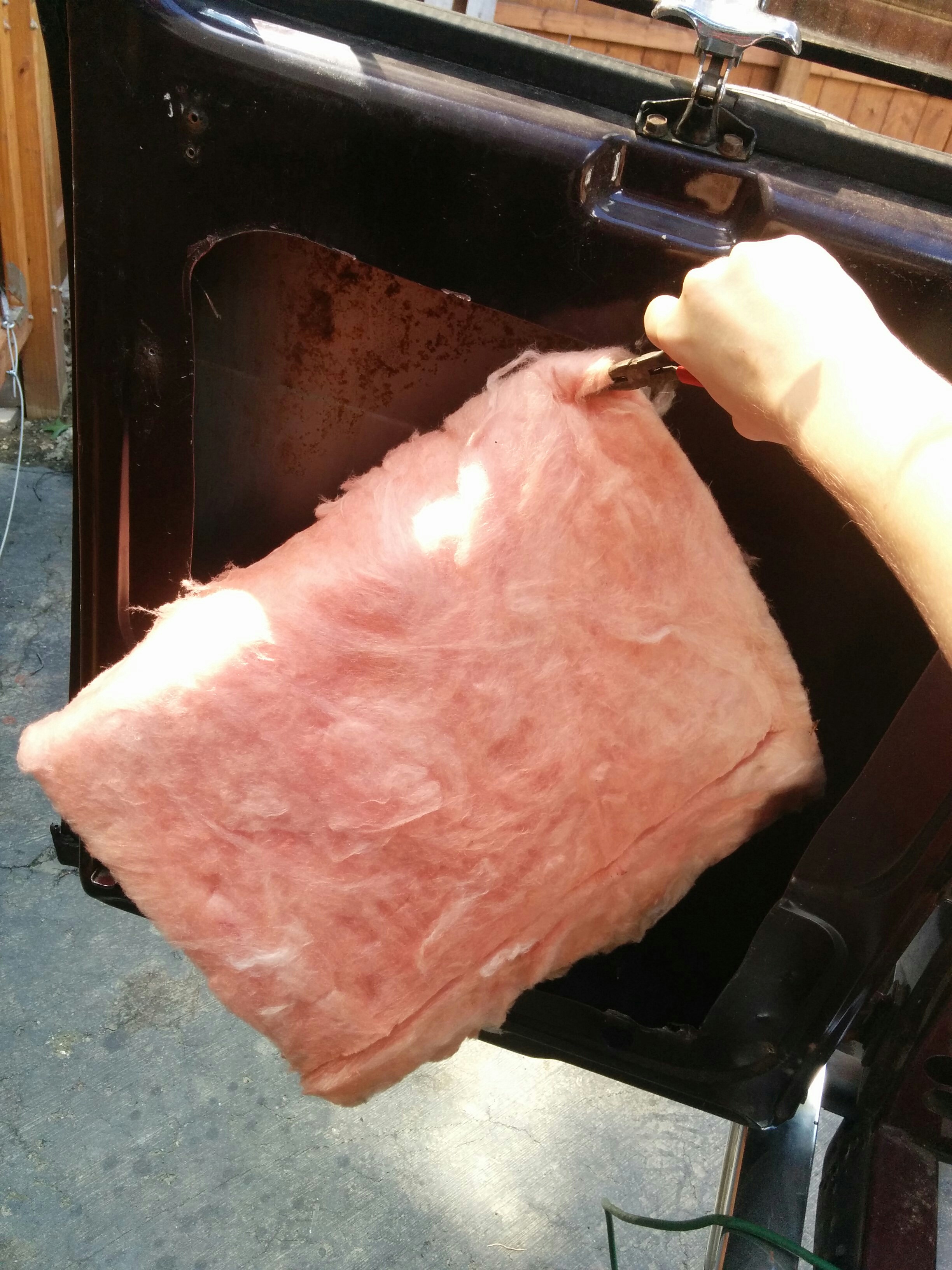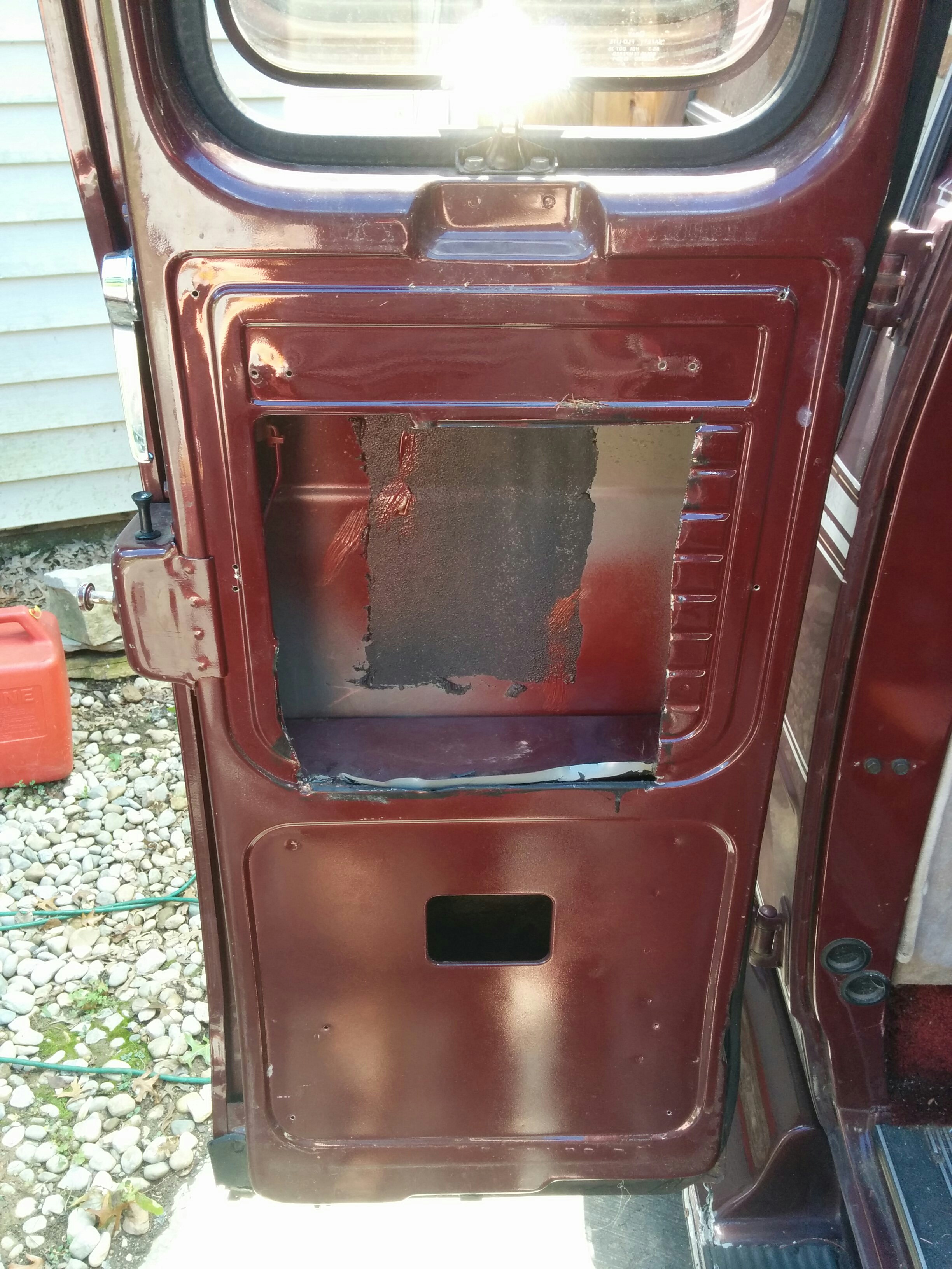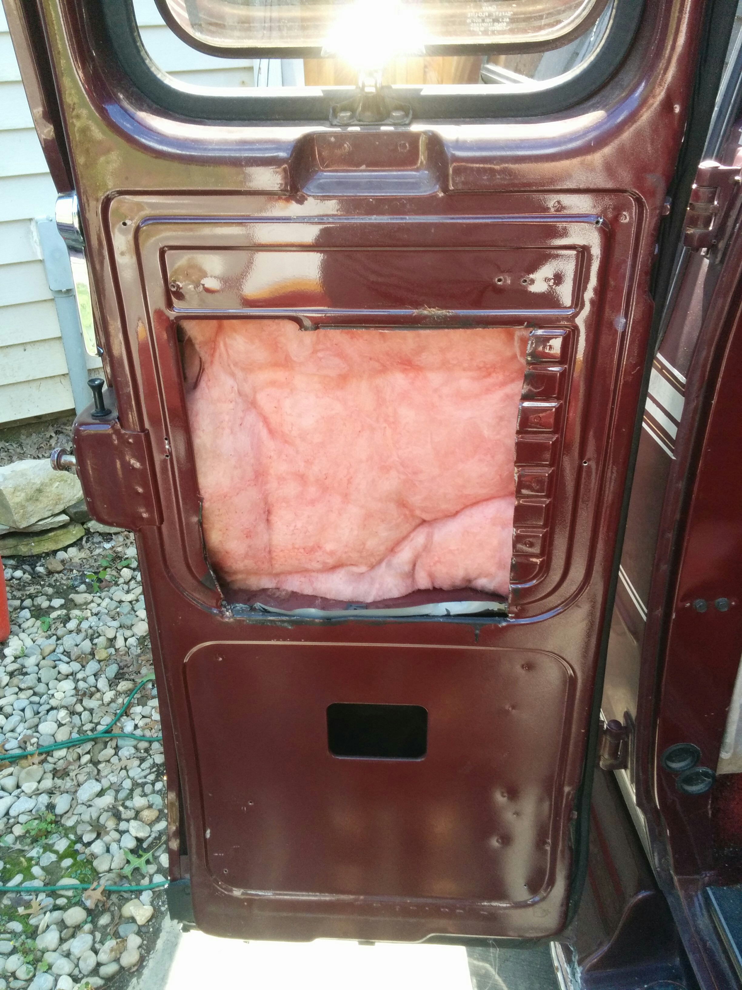 Presumably the conversion company added the fiberglass. I was surprised to see it, but it actually did have a pretty good sound deadening effect combined with the fabric covered door panel. The van immediately sounded much more cavernous with these emptied out.