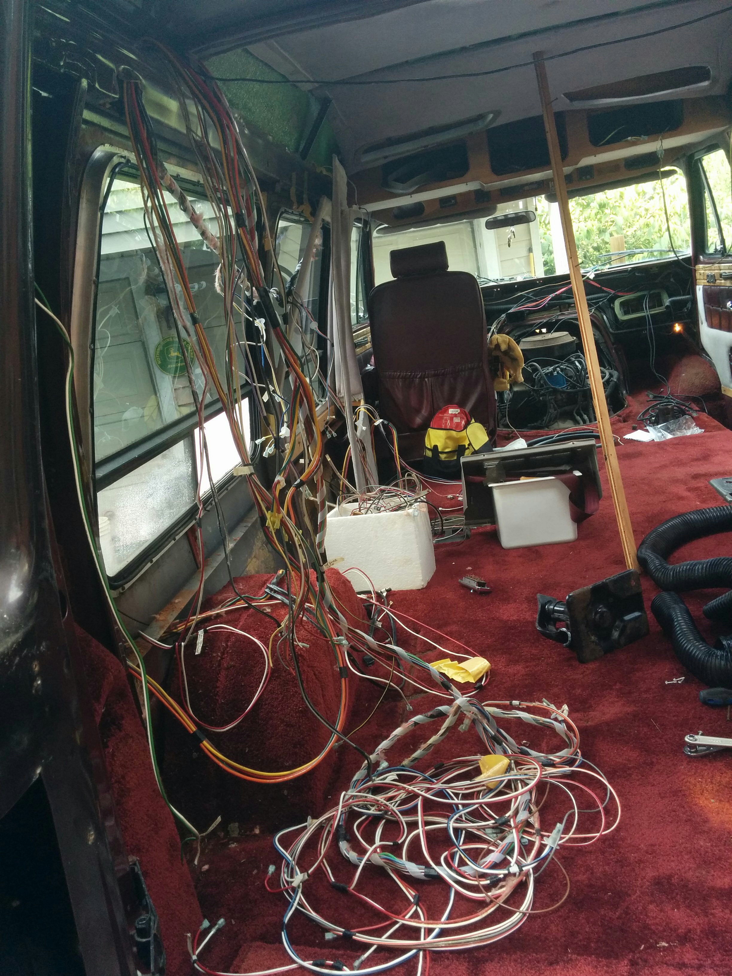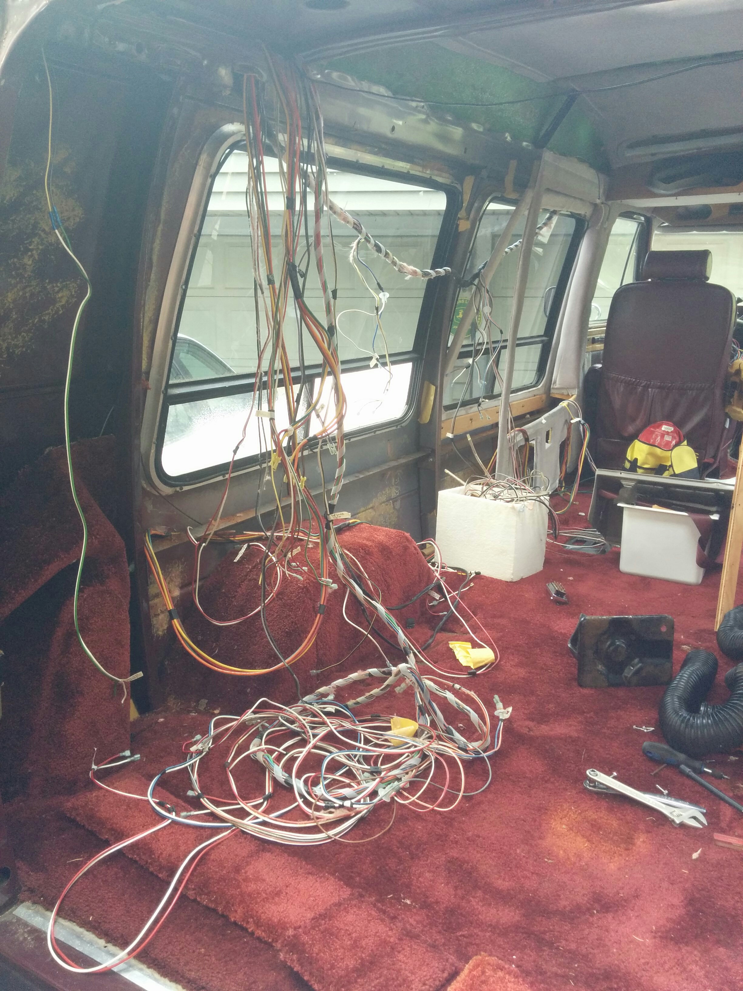 On the drive to Ohio, I’d already had some electrical problems and these only continued to mount as we had worked on the van. This was partly what had motivated me to strip the excess wiring. The more questionable wiring I encountered the more grateful I was to be getting rid of it.