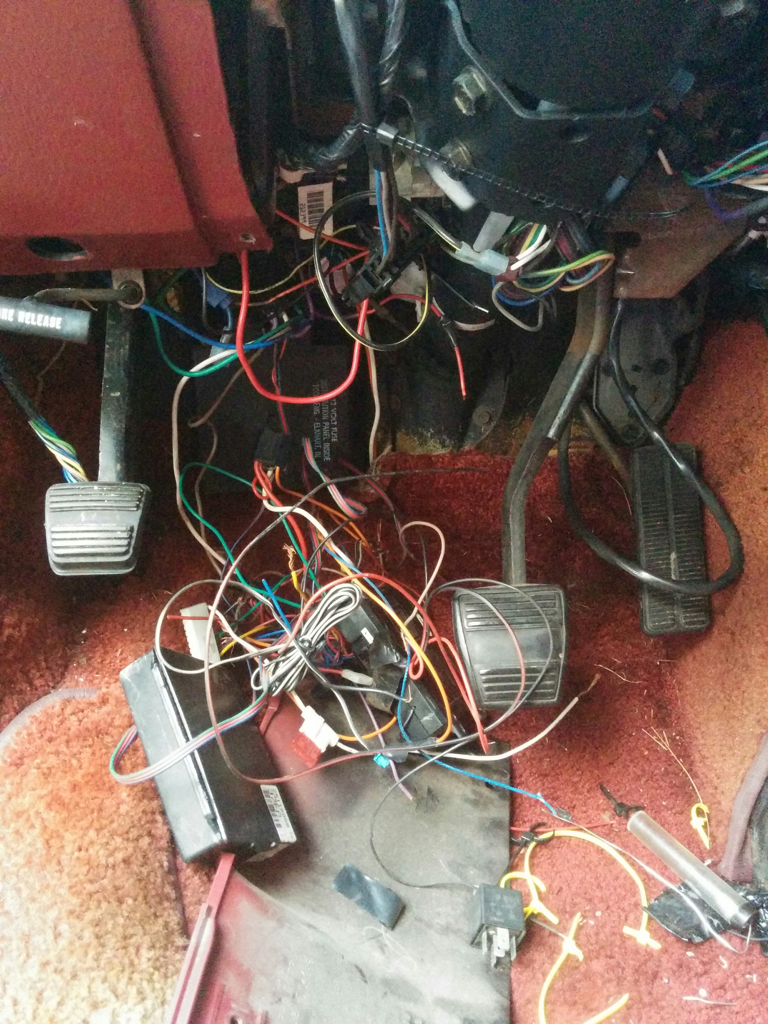 Removing the throat plate dumped another pile of wires on my lap. I ended up removing the dash because I couldn’t see what tf was going on well enough to pull the wires out safely. After that, I was able to free the bulk of the aftermarking wiring from the van entirely.