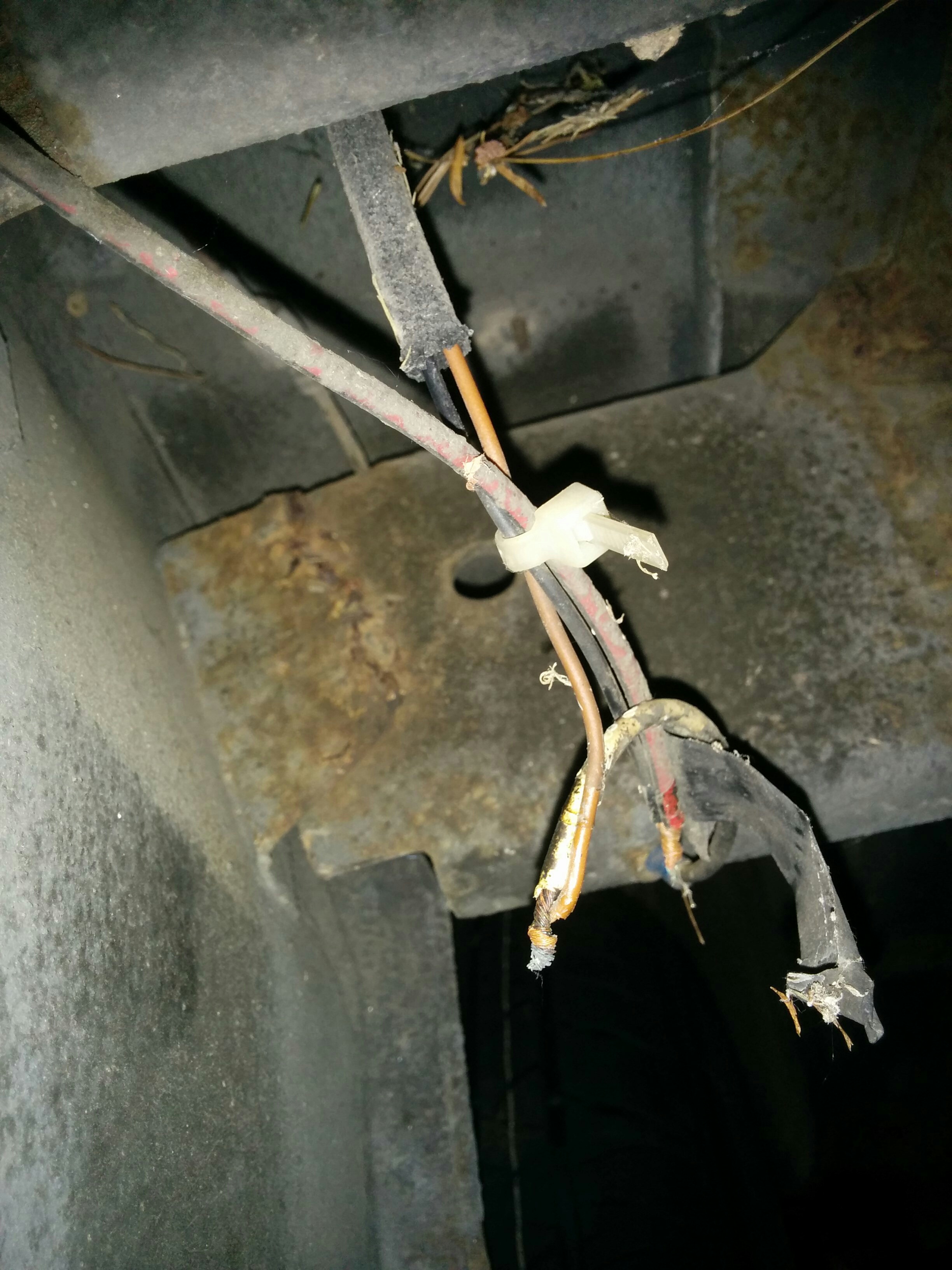 At this point we looked for where the wiring made its way to the front and found it didn’t go under the carpet, but instead vanished outside to the bottom of the van…