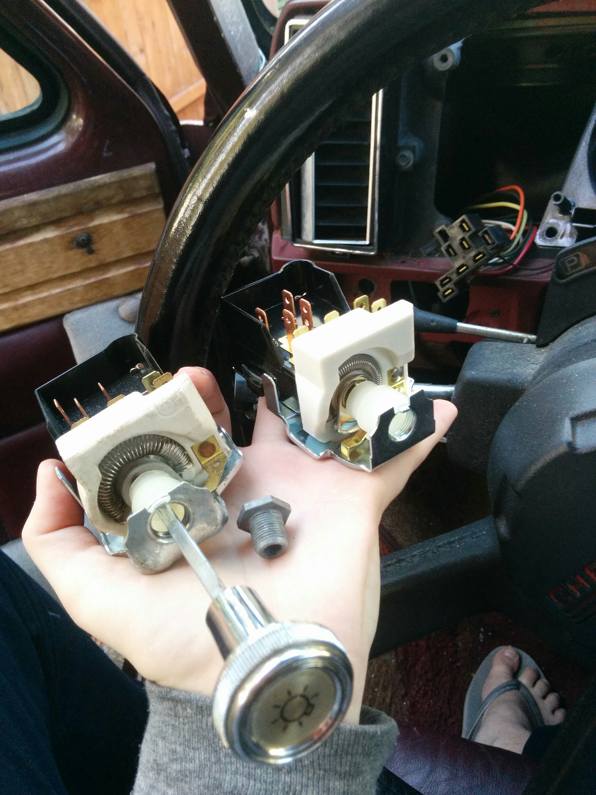 The first step was to replace the light-dimming rheostat. You pulled the rod out to turn the headlights on, and you could rotate the knob to dim your gauge cluster by your preferred amount. Mine was very stiff and uncooperative, so I replaced it with a $23 ACDelco and sprayed contact cleaner on the van connector. This helped a little bit. After some research, I found that I could also upgrade the gauge cluster with led lights.