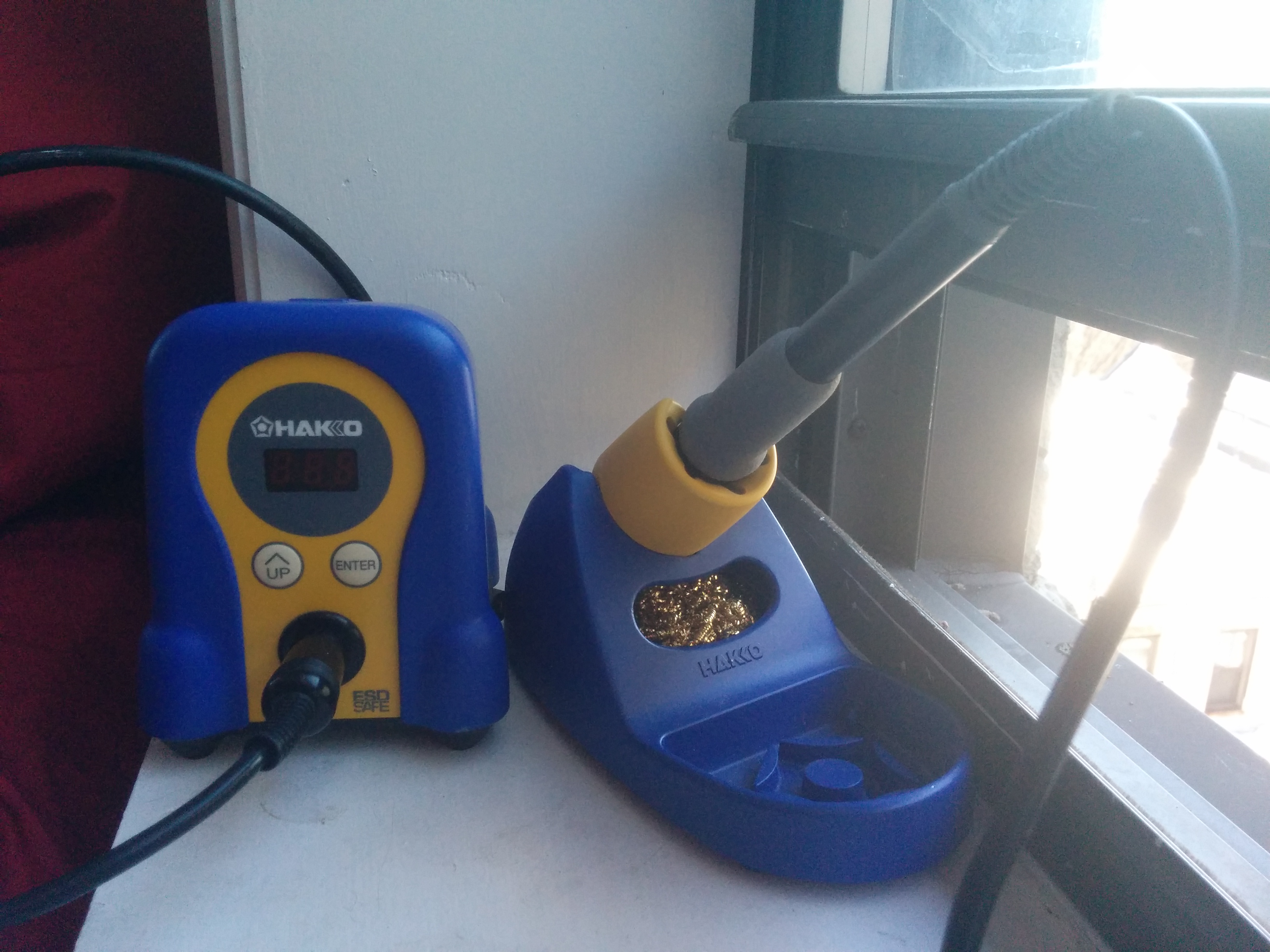 Even better, another engineer there had seen my horrific, innocent-bug-mutilating radio shack iron and advised me to get a Hakko FX-888D. When I flinched at the price, he told me to come back on Tuesday, and he’d give me his (!) since he didn’t use it much anymore. Suffice it to say, I came back on Tuesday.